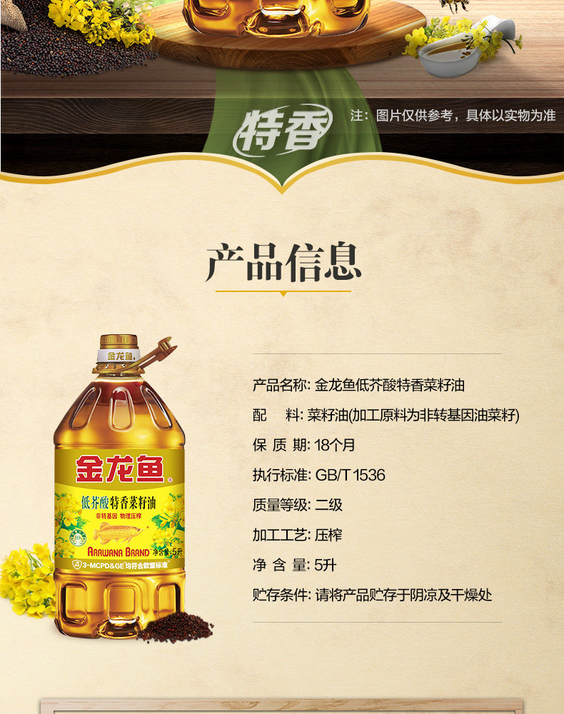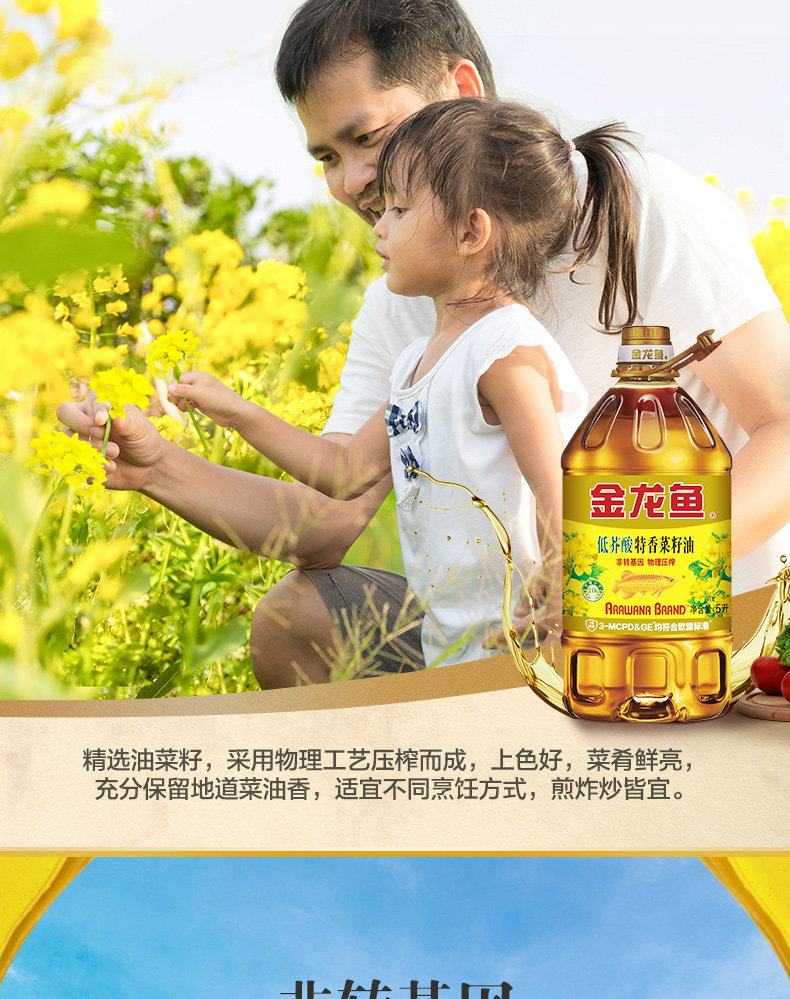 金龙鱼菜籽油5L 低芥酸特香菜籽油5L非转基因食用油